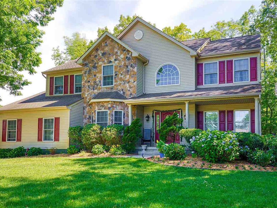 Welcome Home! Beautifully situated on 1-acre lot backing to woods and private oasis. This meticulous 2 story, 4 Bedroom, 3-Bath home features stone front w/covered porch, Gourmet Kitchen features Center Island w cook top, granite countertops, wall oven and Stainless steel appliances, a convenient walk-in pantry and large laundry room. Breakfast area brings the outdoors in w/sliding doors to the wonderful covered deck for convenient outdoor enjoyment & awesome views of woods & wildlife. Family Room features cathedral ceiling and a gas fireplace. Formal Dining Room is nicely situated & spacious for entertaining guests. First floor office/Library. Enjoy a peaceful retreat in the wonderfully Spacious Master suite w/tiled bath, jetted tub & two walk-in closets. Full Basement is a great place for an inside rec/game/theater area w/'top of the line' Superior Walls in the walk-out basement. Ample attached garage affords added parking and storage. Home is located on the end of a cul-de-sac surrounded by custom homes. Two Zone Heat and air conditioning system updated April 2020. Outside shed and plenty of parking.
