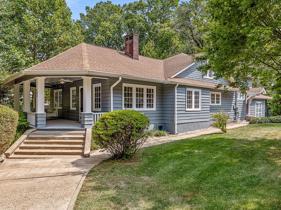 Welcome Home to a residence where historical grace meets modern comfort. Nestled on a lush, grassy corner lot in the highly sought-after Old Town area of Signal Mountain, this exquisite Southern bungalow, built in 1930, invites you to experience a lifestyle of refined charm and convenience.As you approach the property, you are greeted by the classic appeal of a deep, covered front porch. Imagine relaxing in the gentle breeze on the charming swing, savoring your morning coffee or evening refreshment. Mature landscaping enhances the serene atmosphere, while the expansive side patio, complete with an outdoor fireplace, covered grill area, and elevated platform deck, offers an idyllic setting for alfresco dining and entertaining. Step inside to discover a masterful blend of period elegance and contemporary updates. The front entry keeping room with original beamed ceiling and wood paneling bathed in natural light, features a cozy fireplace and opens gracefully through French doors to a versatile den or office space. The dining room, elegantly appointed, connects seamlessly to a well-equipped butler's pantry and a convenient powder room, perfect for hosting gatherings.The heart of the home—the kitchen—boasts a central island illuminated by pendant lighting, dual pantries, gas range, and a charming breakfast area with built-in bench seating. This space flows effortlessly into the inviting gathering room, which includes a mud area with built-in cabinetry, easy access to the side driveway, and barn doors leading to the rear rec/family room. The family room, designed for both relaxation and entertainment, features an additional fireplace and a second kitchen with bar seating. An adjoining bedroom with a private bath ensures comfort and privacy for guests.Retreat to the master suite, a haven of tranquility with its coffered ceiling, two closets (one a generous walk-in with washer/dryer hookups), and a luxurious master bath with claw-foot tub, double vanities and a separate do
