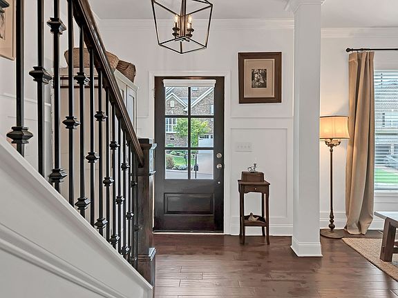 This charming all brick home in the Silver Springs community is loaded with sophisticated upgrades! The downstairs features gorgeous hardwood floors, a chef's kitchen with a huge island and butler's pantry, Pottery Barn lighting, stainless steel appliances, formal dining room, breakfast area,great room with a cozy fireplace, powder room, and a covered back porch. Hardwood stair treads lead you upstairs to four bedrooms, three baths, large bonus room with vaulted ceilings, and a tranquil primary retreat with trey ceilings. Hardwood flooring downstairs, in primary bedroom, upstairs hallway and bonus room. The neighborhood play area and pool are an added bonus to this fabulous community. Don't miss this one!