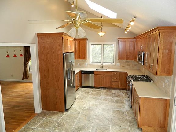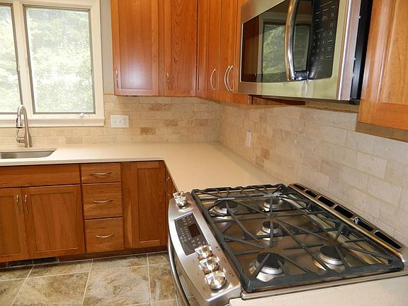 Unique floor plan offering open and updated space throughout. Newly renovated bright open kitchen with slider to deck overlooking large level private backyard. Living room is open to dining room with vaulted ceiling and amazing stone fireplace. Three spacious bedrooms on the second floor with private updated master bath, plus additional bath. Third floor teen or guest bedroom. Home has central vac and central air conditioning. Lower level finished gameroom and office. Laundry room & powder room. Two car attached garage completes this spacious modern style home.