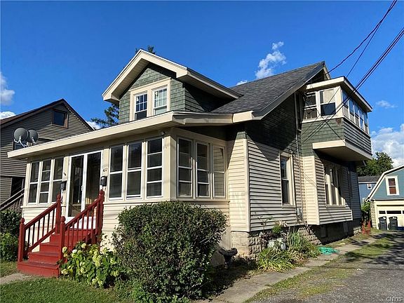 Charming East Syracuse 2 family with 2 car garage and plenty of parking. Ideal choice for owner occupant! Hardwood floors, natural woodwork, enclosed porches on both levels. Separate utilities and meters. Updated baths and kitchens including some new appliances. Both flats have new hot water tanks. Newer windows on first level, some newer on 2nd. Vinyl siding, New steps to entrances for each unit. Separate laundry hook ups in basement, new sump pump 2018. Property is walking distance to Village Park and Pool, nearby school. Low maintenance and easy to rent in desirable neighborhood, both rentals provide excellent income stream for investor.