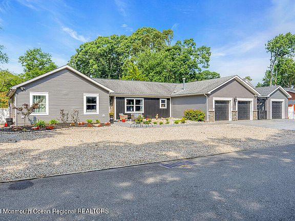 Welcome to your new dream home! This spacious 4 bedroom, 2 bathroom sprawling ranch style house is located on a corner lot in the highly sought-after Sunrise Beach area. The house boasts a stunning paver driveway, providing ample parking space for you and your guests. As you step inside, you'll find a bright and airy open concept kitchen and living room area, perfect for entertaining family and friends, includes a walk in laundry room too! The bedrooms are spacious and bright, with plenty of room for a growing family or guests. Outside, you'll find a great entertaining space with easy access to all 3 garages. This property is conveniently located near great parks, schools, shopping centers, and the beautiful Barnegat Bay.
