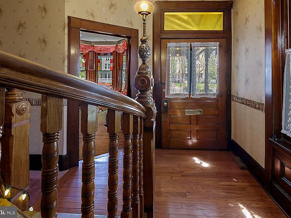 Welcome to 402 High Street! This home was built in 1885 and has had only two owners. Mount Holly is the county seat with a vibrant Main Street, spectacular architecture, and history at every turn. So much of the original home has been preserved making this property an historical gem! Stately situated back from the street with its iconic yard urn, brick exterior and walkways, slate roof, stained glass windows and wrap around front porch, this historic home is one of a kind ! Upon entering, you are awed by the gorgeous curved oak staircase and floor to ceiling gilded mirror. There are so many original intricate details to notice as you walk through the home: 12 foot ceilings, stained glass windows, ornate woodworking, window locks, light fixtures, fireplaces, mirrors, and more. The Living Room with its spectacular ornate fireplace mantle boasts wonderful views of High Street. Pocket doors lead to the dining room with a fireplace and another gilded mirror. The spacious Family Room also has a fireplace and opens to the kitchen. The kitchen has all the modern conveniences required for today's lifestyle. Open and airy, this room has plenty of counter space, cherry cabinetry and a dining area with skylights. Please check out the built in hutch with photos of the original floor plans and owners- the Merritt Family. An expansive 3 season porch overlooks the serene and private backyard. The main level also has a powder room. Take the grand staircase to the second level where there are 4 large bedrooms, a full bath, and a half bath/laundry room. The main bedroom has a walk in closet, while the other rooms also have large closets. The bath has a jetted soaking tub, walk in shower stall, and sink. There is an adjacent commode/sink space. The third level has two more bedrooms, storage rooms, and amazing stained glass windows. This home has a full basement with updated utilities and Bilco doors to the back yard. The grounds have been beautifully landscaped with trees, shrubbery, and flowering plants that compliment the vast grassy backyard. There is a large brick patio, the perfect place to dine al fresco. While this home is located in the heart of historic Mount Holly, there is plenty of off street parking, with a long stone driveway and parking area in the rear of the home. Additional information on this amazing home: A cost saving and energy efficient geothermal HVAC system was installed, providing a modern forced air system to the home. In addition, two humidifiers for two zones (first and second floors) were added for increased comfort in the dry winter months. In 2017, three gas fireplace inserts were added providing ambiance and additional heat sources. An irrigation system was also added to allow for lush landscaping. Own a unique Victorian home and be a part of historic Mount Holly at 402 High Street.