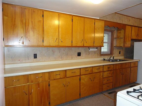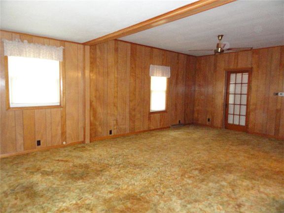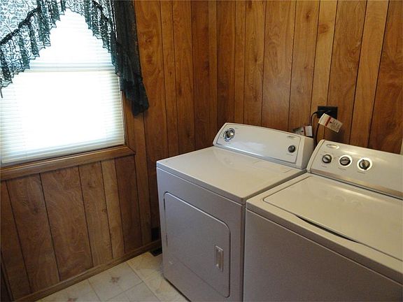Two bedroom ranch, eat-in kitchen, living room, 1 bath & 1st floor laundry. 2 detached garages with access to both from a circle drive. Nice large level lot.