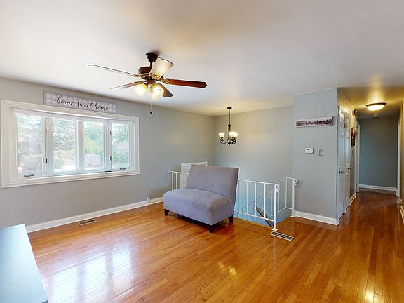 Spectacular move-in ready Romeoville home! With 4 bedrooms and spacious rooms throughout, this raised ranch is sure to impress. Beautiful blooming rose bushes greet you at the front entrance, into the foyer and up to the living room with gleaming hardwood floors and bay window. The kitchen offers a large eating area, tiled floor and door to the dear deck. Down the hall you'll find 3 generously sized bedrooms all with hardwood floors! The full bathroom has a tub and window offering great sunlight. Downstairs is the living room with large window - a great space for a TV room, office, playroom and more. The extra-large laundry room includes a door to the rear exterior and room for shelving or even a workout space. 4th bedroom includes tiled floor and closet! Long concrete driveway leads to the detached 2-car garage and the fully fenced yard has a deck with storage space underneath. Roof 2021, hot water heater 2020. Much of the home has been spruced up with fresh neutral gray paint throughout! Holden Ave is a quieter street for the neighborhood and includes sidewalks great for evening walks and bike rides. Just off 53, this home is near all major amenities including quick highway access to I-55 or I-355. Come take a look, this home is not going to last long!