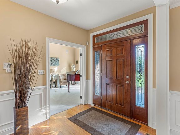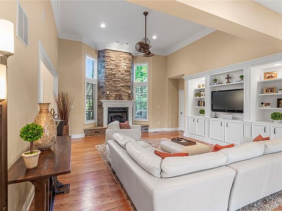 *Epitome Of Elegance & Style! Meticulously Maintained 5 Bedroom Home Features Amazing Attention To Detail Throughout!* Welcoming front porch, spacious 2 story family rm offers a floor to ceiling stone hearth fireplace & custom built-ins, formal dining rm, den w/ vaulted ceiling, gourmet center island eat-in kitchen boasting granite tops, stainless appliances, breakfast bar & access to the private awning covered rear deck, main floor owners suite offering a walk-in closet, cathedral ceiling & luxury bath, 2 additional bedrms w/ Jack-n-Jill bath on the main level, the upper level offers 2 additional generous sized bedrms both w/ walk-in closets & full bath, finished walk-out game rm featuring a 2 sided fireplace, custom built bar, full bath, exercise rm or could be another bedrm, home office, etc. & plenty of storage space, lush landscaping w/ lighting & irrigation system, 5 car garage w/ custom cabinets, conveniently located to I-79, 576 all of Southpointe amenities, schools & more!