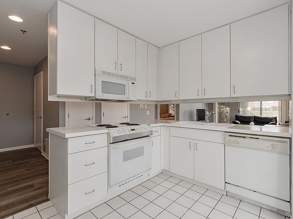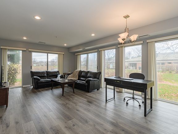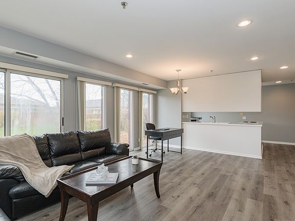Inviting first floor corner unit with amazing water views and privacy! Bright and open floor plan with walls of windows to allow natural light. Brand New gorgeous vinyl flooring throughout with a natural wood "look" but is waterproof and scratch resistant. White Kitchen with plenty of cabinets, eating area table space and open to Living Room for todays lifestyle. Spacious Master Bedroom features a large walk-in closet and private Bath. Hall Bath has brand New white vanity! Relax and enjoy the patio overlooking tranquil pond views! Additional improvements include newer In-Unit washer/dryer(2018), all new recessed lighting, new kitchen faucet, Nest heating system and freshly painted gray neutral colors throughout! Conveniently located across from Clubhouse. Enjoy indoor/outdoor pools, tennis courts, exercise faciliy and walking paths! Carefree and maintenance free living at its best! In building heated garage, storage unit and bike room. A true gem!