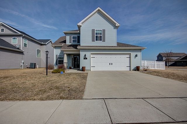 Sitting on a spacious corner lot, this updated home has 4 bedrooms, 2.5 bath and a 2 car garage. As you enter into the foyer, there is a half bath conveniently located for guest. Wood floors guide you to the large open living area. The Living and Dining room have plantation shutters and are open to kitchen for great hosting space. The Kitchen has a center island that seats 4, a stainless farmhouse sink, newer stainless steel appliances and a custom backsplash. The first floor bedroom has a vaulted ceiling and sliding door that leads you to the patio, custom matching shed and vinyl rod fenced yard. The intricate stairs have new carpet and overlook the foyer as they lead you upstairs where you will find new laminate floors in the hallway, a large linen closet, laundry room, 2 bedrooms, a master bedroom suite which includes a jetted tub, double sink vanity and walk in closet. This home is ready for you to move in and enjoy.