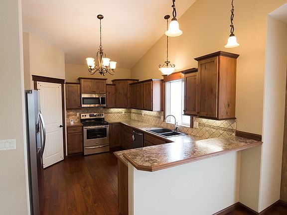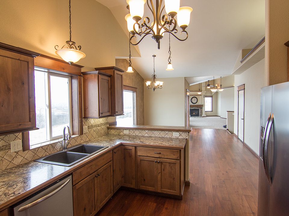 VIEW, VIEWS, VIEWS, this home is on the ridge of a quiet cul-de-sac with great views of the ROLLING VALLEY and CITY LIGHTS. The home has VIEWS from many angles inside the home. The LARGE WINDOWS lets the OUTDOORS IN. The home features many beautiful upgrades and a lot of ATTENTION TO DETAIL. The stunning fireplace, CUSTOM KNOTTY ALDER cabinets highlighted by under-cabinet lighting, along with unique floor plan are a few. The WOODWORK IS BEAUTIFUL. Extra features: Nooks, Accent Lighting Area, Stainless Steel Appliances, & HIGH CEILINGS. The unfinished basement can accommodate additional bedrooms, exercise room or den, bath and family room. ROOMS ARE FRAMED OUT and it has a WALK-OUT BASEMENT. There is a completely finished EXTRA SPACIOUS TRIPLE GARAGE fully insulated, sheet rocked, H & C water, & floor drain.