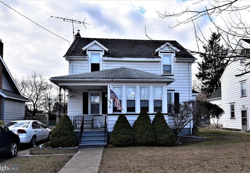 Well kept, clean, cozy home with 3 bedrooms, 1 1/2 baths, basement and a big fenced yard on a quiet street in Riverside NJ. Front flagstone covered porch leads you thru the front door into the tiled Florida room surrounded by windows. Thru the double glass doors you enter the 27' long living room with 9' ceilings and twin closets. Next is the dining room with a big bow window that overlooks the spacious rear fenced yard. The adjacent kitchen has plenty of cabinets to compliment the gas range, dishwasher, disposal and refrigerator(included in the sale) and a powder room completes the first floor. Upstairs are 3 carpeted bedrooms and a full bath. There is an access gate from the driveway to the back yard and a shed. Full basement has plenty of room for a workshop(or future finished space). Minutes from Rt 130 and a Riverline station.