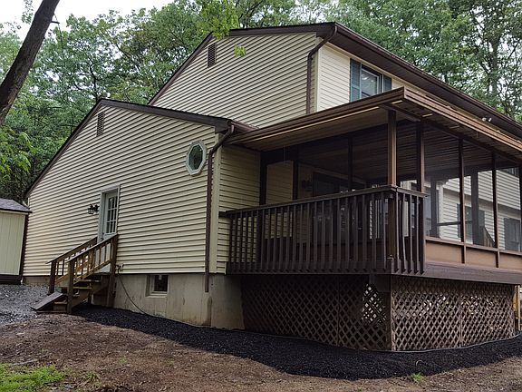 Single family home completely renovated All bathrooms and kitchen are brand new. New flooring thru out whole house (NO CARPETS) New doors and trim Two car garage Oil heat forced hot air Roof is only 4 years old 2,315 sq ft 4 bedroms 2 1/2 baths 1.25 acres built in 1988 Low Taxes $4,200 Not a gated community 3 to 4 miles to Highway 80 exit #299 Tannersville outlets. property has a Stroudsburg address because that's who delivers the mail but the town is Reeders next to Tannersville Great school district. for more info