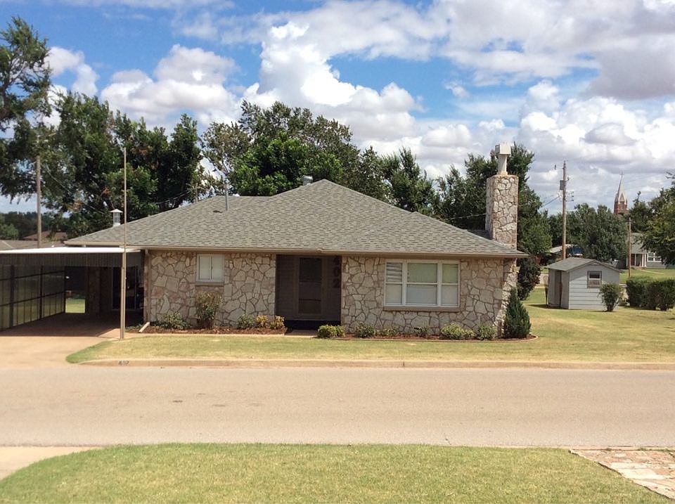 Beautiful spacious home sitting on a corner lot in Okarche. Home has spacious kitchen with island, all appliances remain with the home including up right freezer and washer/dryer. newly installed soffit, porch siding and guttering. This is a one-of-a-kind solid home.