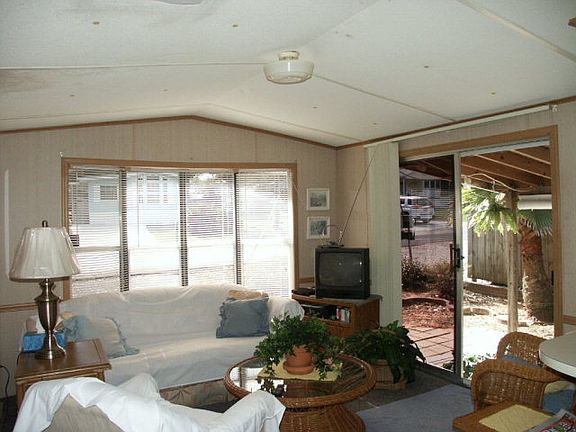 Looking For A Winter Retreat or Get a Way??? Check out this Park Model in the Land Harbor Division of the Spanish Cove Community. This property includes: Everything! It offers: furniture, appliances, covered deck, out building with full bath, window treatments, and deeded RV lot. Enjoy the amenities of Spanish Cove such as: heated pool, beach area, clubhouses, tennis courts, fishing pier, parks, and 24 hour security. Affordable living in a great area near the gulf coast.