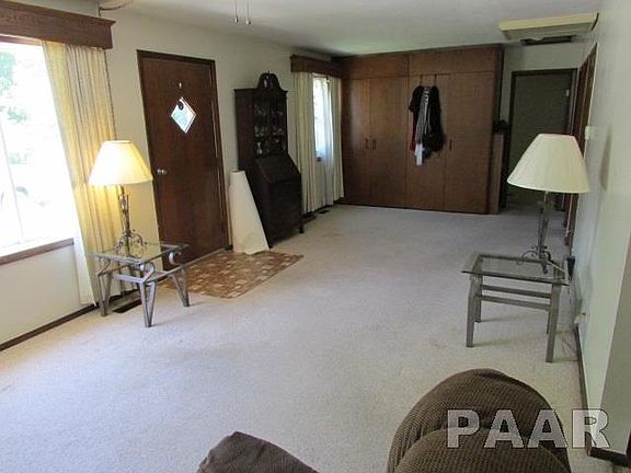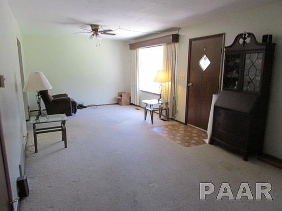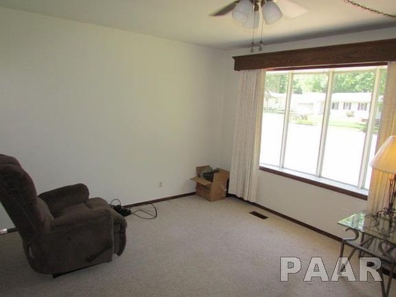 Charming 2 bedroom ranch on a dead end street in East Peoria. This house sits on a large wooded lot with a 2.5 stall detached garage. Newer roof, ac, furnace and water heater. Walk-out basement has potential 3rd bedroom and family room waiting to be finished. House is in an trust and being sold "as is".