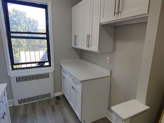 Large studio with large separate eat in kitchen. completely new renovated kitchen. Bathroom freshly renewed. plenty of closet space. Open house schedule will be posted on StreetEasy There is an elevator No laundry room in the building. Heat and water included in the rent. Yes there is a broker fee.