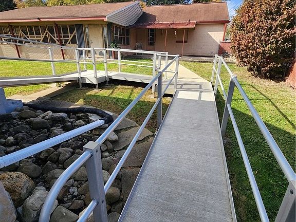 This charming home has 3-bedrooms/3-full baths in Union Township. Perfect for someone seeking a first-floor bedroom with an en-suite full bathroom and is also handicap-accessible from the road to the back porch, screened-in pavilion and double car garage. The kitchen has plenty of cupboards. The living room and dining room create a welcoming space for entertaining. Upstairs you will find two more bedrooms and a shared full bath. The basement includes another full bathroom with a shower. Safety and accessibility are prioritized with glass block windows in the basement and handicap accessibility. This property also features a double car garage and a screened-in pavilion, perfect for relaxing summer evenings without the nuisance of mosquitoes. A new roof was installed in 2018 along with new windows upstairs. The downstairs windows were installed in 2017. A new gas line was recently installed on 10/17/24. Don't miss out on this unique and versatile property.