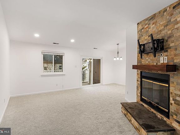 Welcome to 402B Mulberry Cove, a well-maintained 2-bedroom, 1-bathroom second-floor condo offering 1,012 sq ft of bright and comfortable living space in a quiet Mt. Laurel location. This inviting home features new recessed lighting and an open layout that maximizes natural light. The living room boasts a wood-burning fireplace with a stone feature wall and mantle, perfect for cozy nights in.