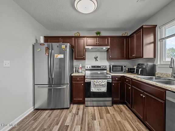 Welcome to this freshly updated 4 bedroom, 2 bath that is home full of charm, comfort, and style—ready for you to move right in and start making memories. Inside, you'll love the easy-to-clean luxury vinyl plank (LVP) flooring that flows throughout the entire home, giving it a fresh and modern feel. The kitchen is a true standout with bright white cabinets, sleek matching stainless steel appliances, and plenty of space for cooking your favorite meals or hosting weekend get-togethers. The layout offers both privacy and togetherness, with room for everyone to spread out and relax. Step outside and enjoy your spacious yard—perfect for pets, playtime, or just soaking up the Carolina sunshine. The location is a win, too! You're just minutes from the area's military bases, local schools, beaches, and shopping. Whether you're commuting, enjoying a beach day, or heading out to grab a bite, you're right in the heart of it all.