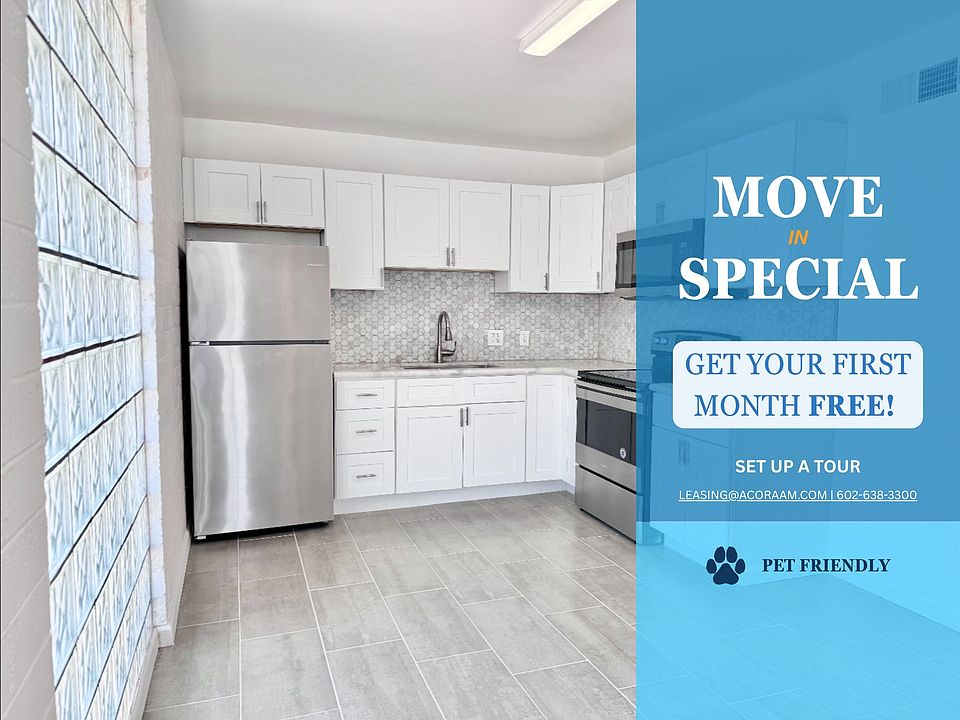 *MOVE IN SPECIAL - LARGE PATIO - BRAND NEW TILE FLOORING* Downtown Phoenix Living at The Vue - Remodeled 3 Bed 2 Bath Apartment Close To Everything Downtown! Available Now! MOVE IN SPECIAL! 1ST MONTH FREE WHEN SIGNING A 13 MONTH LEASE OR AN 18 MONTH LEASE! This is a First Floor Unit! Downtown Living at The Vue! Rare Remodeled 3 Bedroom Apartment with In-Unit Washer & Dryer Close To Everything Phoenix Has To Offer! ABOUT THE PROPERTY -Enjoy living in Downtown Phoenix close to The Roosevelt District! Enjoy the Many Eateries the City has to offer such as The Arrogant Butcher, The Vig, Taco Chelo, Pizzeria Bianco, Harumi Sushi, and too many more to list! Entertainment can be found at every corner whether you are looking for shopping, nightlife, or a place to eat. The Vue is located moments from ASU Downtown Campus, The Light Rail, Banner Medical Center, Sky Harbor International Airport and so Much More! UNIT FEATURES -Large back patio -Quartz countertops -Brand new tile flooring -Upgraded appliances -In-unit washer & dryer -Modern light fixtures -Ceiling fan -Huge closets with additional storage throughout PLEASE ONLY INQUIRE IF YOU MEET THE FOLLOWING REQUIREMENTS: -No Smokers -No Crimes Against Children -No Evictions or Bankruptcies Within 60 Months of Application Date -Household Income of 3x the Monthly Rent is Needed. Proof of Income is Required -Acora Asset Management LLC Processes Full Credit & Criminal Background Checks on All Applicants & Complies With All Fair Housing Laws PET POLICY -Pet-friendly community -$25/month -One-time $150 pet fee -Pet charges are flat, not per animal -Limit is up to 3 pets UTILITIES Utility Reimbursement: $300/month for All Utilities (Electricity, Water, Sewer, Trash) TERMS & PRICING -Rent: $1,595 -Security Deposit: $1,200 (On Approved Credit) -Application Fee: $65 per applicant -Resident Services Charge: 2% of Monthly Rent -Renter's Insurance: Required -Lease Terms: 12, 13, or 18 Month Leases