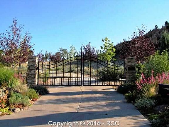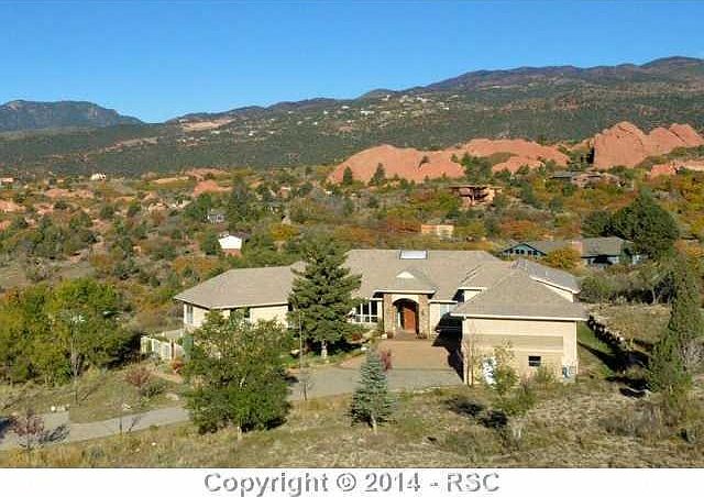 This home is "King of the Hill." Nestled on a 2.33 acre parcel at the end of a quiet street with private entry gate, this custom home offers spacious main level living and stunning views of Garden of the Gods, Pikes Peak & the entire Front Range. Extras include a fire sprinkler system, radiant in-floor heat, central air, security system, central vac, fenced courtyard w/ gardens and koi pond w/fountain. The main level features 10-foot ceilings or higher, 20" tiled floors & expansive walls of glass to capture the view.