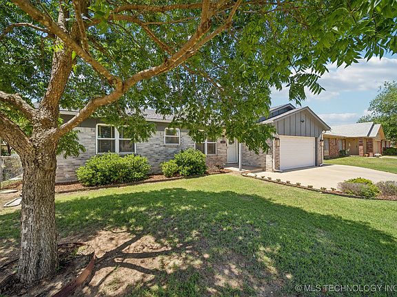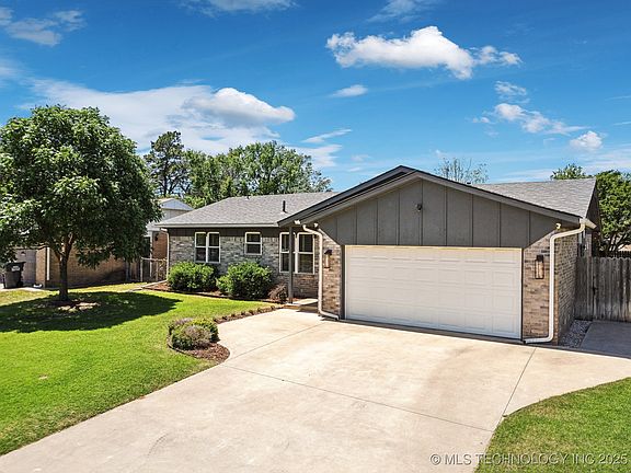 Welcome to your newly renovated oasis just west of Jenks High School! This beautifully remodeled home over the last 6 years radiates a happy, contemporary vibe, perfectly blending comfort and style. The highest quality updates include inviting patio cover addition, and stunning extensive landscaping with modern lighting that creates a warm, welcoming atmosphere day and night. Enjoy peace of mind with high-efficiency heat and A/C systems (2017), air duct lining, hot water heater, & upgraded plumbing and electrical systems featuring whole-home surge protection. The home boasts of decorator colors, newer fixtures, double-hung windows, and stylish interior and exterior doors each detail thoughtfully refreshed. Also custom blinds, new driveway/sidewalks, The chef's kitchen shines with brand-new cabinets, sleek appliances, and elegant countertops, creating a perfect space for entertaining and daily living. Both bathrooms have been fully updated with modern finishes, complemented by newer flooring throughout. The home offers two cozy bedrooms and a custom built-in Wall entertainment center, that adds a touch of sophistication. Step outside to a peaceful backyard retreat with a covered patio, perfect for relaxing or entertaining, Located within walking distance to downtown entertainment and shopping, and close to Tulsa Premium Outlets and major expressways, this home combines upscale living with unbeatable convenience. Your happy, contemporary lifestyle starts here! Home is 2 bedrooms, giving more living space!