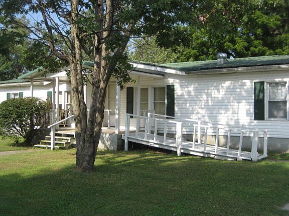 A smart arrangement of an open floor plan and a vaulted ceiling creates an easy flow around the living room, dining room and kitchen. The wood burning fireplace is a focal point and eye-catcher in this spacious living room and there are sliding doors leading to the deck and back yard. The kitchen has plenty of cabinets and lots of counter space. There's even a snack bar and pantry too. You'll also be glad to know there's a range, hood/fan & a refrigerator. The dining room has a built-in china cabinet. Two bedrooms are on the north end of the home & share a large walk-in closet. The full bath with tub/shower combo is nearby. The master bedroom is on the south end of the home and has an adjoining master bath with two basins, garden tub, separate shower and a walk-in closet. The attached 23 X 23 garage has access from the outside with a walk-in door and a garage door.The front entrance to the house has a handicap accessible ramp. There is vinyl siding on the exterior and a metal roof.
