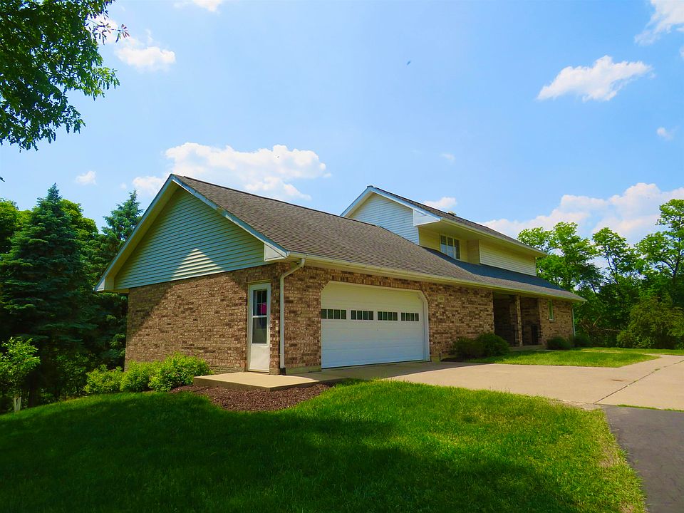 Enjoy the peaceful setting of this immaculate spacious two-story home. This home features three bedrooms and three full baths. Upper bedrooms have doors that open to balconies overlooking the large living space. Updated kitchen with granite countertops and stainless-steel appliances. Kitchen has a roll top desk built in and counter space for when you want to enjoy lunch or a snack without using the dining room table and also has a space for separate dining that leads to a large deck. The washer and dryer are located on the main level as well. The deck has new Trex board flooring and in two weeks will have the new railing installed. There is a separate room off the kitchen for dining or could also be used as an office or possibly a sitting area to enjoy your favorite book. The cathedral ceiling living room has a floor to ceiling brick gas fireplace and large windows that give much natural light. Main level has beautiful hickory hardwood flooring. Master bedroom is located on the main level has a very large walk-in closet. The lower level features a large recreational room with a free-standing wood burning fireplace and walk out to a patio area. As you pass through the door in the rec room there is another room that could be used as an office space or hobby area, additionally there is a good-sized storage room. The home has many closets and storage space which is such a plus. Attached to the home is a two-car spacious garage. As you venture outside, you can enjoy over an acre of landscaped yard with many mature trees. There also is an approximately 8 x 10 storage shed on the property. Conveniently located just a few blocks from downtown historic Galena with its many shops and restaurants. A must see to fully appreciate all this home has to offer.