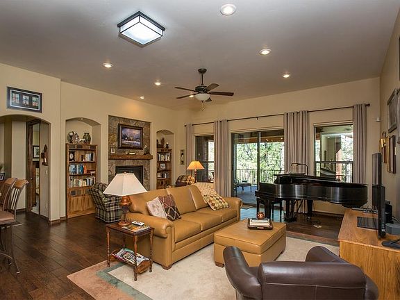 Single level home sited on one of the prettiest lots in Chaparral Pines surrounded by Tall Ponderosa Pines and views of four Fairways; Home is like a jewel box filled with gorgeous hardwood flooring, 8' wood interior doors & and casings, two master suites with ensuite baths, a study with built-ins, and the master bedroom has a cozy fireplace; The great room offers a stone fireplace & opens to large composite covered deck; Kitchen offers island, 2 breakfast bars, granite counters and white cabinets, stainless appliances and a nice sized dining area; Lower level, 388+/- sq. ft.is a hobby room or 4th bedroom, bath & large closet plus storage room. A huge crawl space for storage; This inviting home is impeccable and ever so livable; A one hour showing notice please.