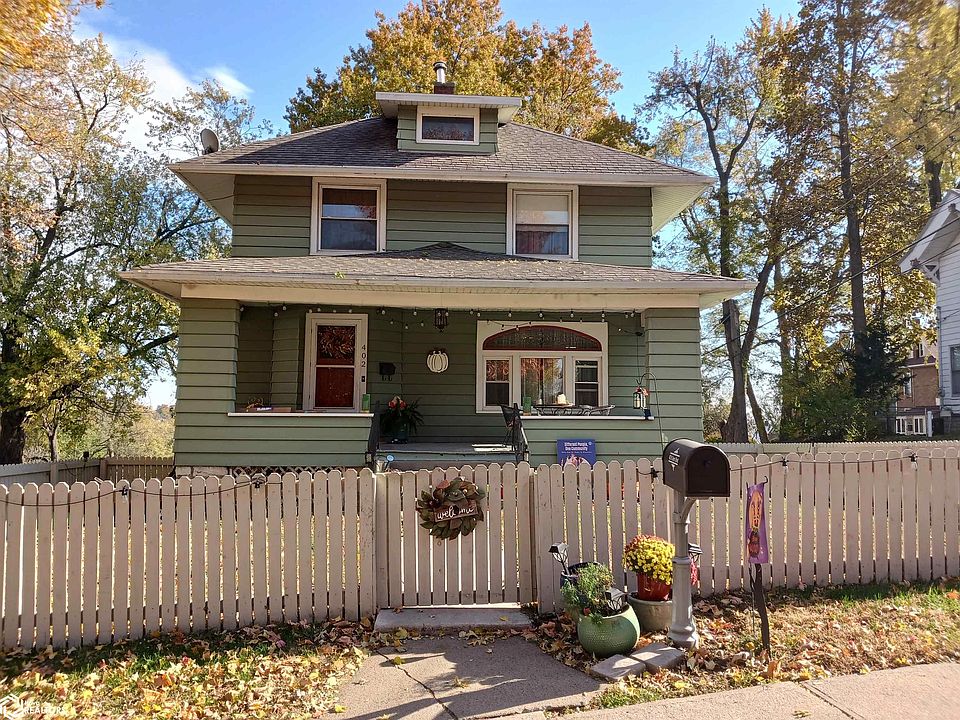 Don't miss out on this beautiful 4-Square home in the historical district of Ottumwa! This home offers a lot, including 4 spacious bedrooms upstairs and walk-in closets. Also included are Kitchen Appliances (fridge, range, exhaust fan, dishwasher) and Washer/Dryer. Throughout the entire house is gorgeous woodwork, floors, stairs, and leaded window on the staircase. A sizable front porch and picket fence grace the front of the home. Newer hot water heater, furnace, central air, and garage door. The home has a full basement with a solid foundation. Some furniture may be negotiable. Make your appointment today to see this beautiful yet affordable home. DON'T miss out!!