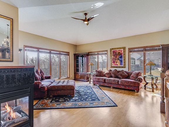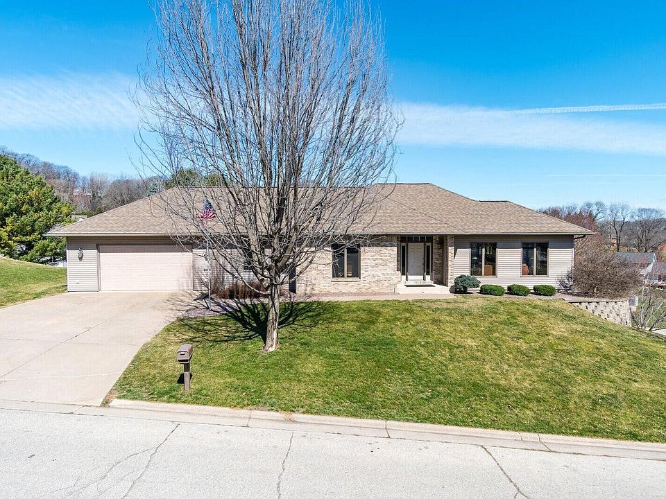 Stunning ranch home with magical views! Warm wood floors welcome you into this home and wind through the main level. 3 bedrooms, 3.5 bathrooms and an attached 2.5 car garage. Vaulted ceilings and large windows allow an abundance of natural light in. Maple cabinets, trim and doors. Kitchen has granite tile countertops and and island. Great room and dining room enjoy the cozy three way fireplace. Master bedroom with private bath with a double vanity and jetted tub. Lower level has another three way fireplace, 2 bedrooms, office, full bath and walks out the one of two decks and a hot tub. 2nd kitchen would make a perfect mother-in-law suite. Formal dining room, speaker system, security system, main floor laundry, central vac, in-floor heat are just some of this homes special features.