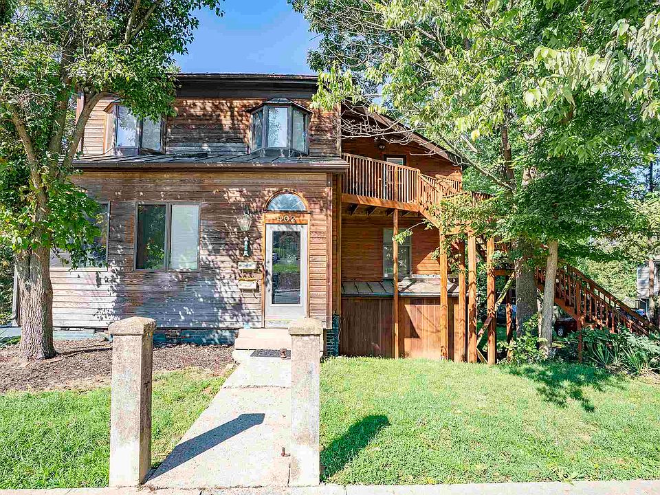3 distinctly different apartments in home that feels like a vacation Chalet. Basement apartment (B1) is a 2BR 1BA apt. It has 2 private entrances, private parking, ceramic tile, central HVAC, washer/dryer in apartment. Tenant pays electric. Apartment A-1 is a showplace. Amazing Kitchen with ceramic tile, butcher block counter, unique glass doored cabinets, etc. 2BR 1BA with private office with stained glass and skylight. Washer and dryer in apartment. Large master bedroom with hardwood floors and private entrance to exclusive porch. Unique and amazing apartment. Apartment A-2 is even more unique. 2BR 2BA showplace with washer/dryer in apartment, private balcony, and a large living room. Feels like a resort Chalet with wood ceilings, and many extras.