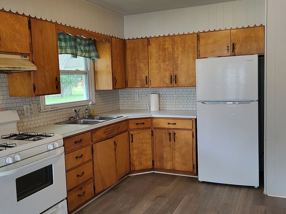 Large living area, kitchen with dining room. New vinyl plank flooring through out, new windows 1 year lease