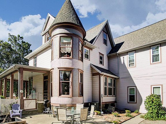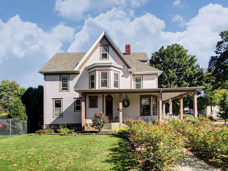 Former home of John Zimmerman Manufacturing. This historic grand Quess Anne situated on large corner lot offers 3229 sq ft + a finished 1080 sq ft. walk up attic and a full basement for plenty of storage. This grand home features beautiful woodwork, hardwood floors, parquet floors, 3 fireplaces, 2.5 large baths! Plenty of room for your antique cars, hobbies, or extra storage in with the 24x45 4 car garage! Property is listed as a 4 BR...could be 6! New pool liner in 2018. Original front porch pillars are in the garage. Original LR wood FP is refinished and in the attic for the new homeowner. Round windows have been refinished and re roped. Plenty of room to entertain! All measurements are appx.
