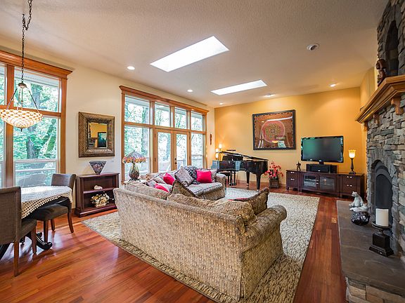 Secluded Luxury Home on .64 Acre Lot. Backs to Forest Park. Cherry hardwoods. Soaring ceilings. Living room with stone fireplace. Coved dining room. Master Suite on main. Gourmet kitchen with granite tops, skylight, nook. Family room down with mini kitchen, second deck. Guest Suite, two additional bedrooms down. Excellent schools! Less than 3 miles to NW 23rd shops and dining! More than can be shown here, click Vtour for home brochure.