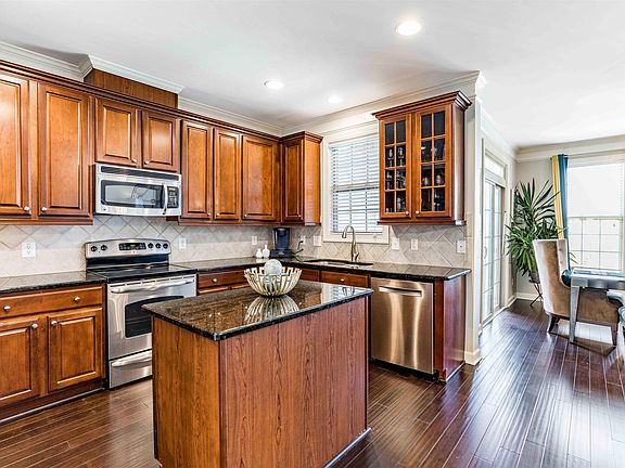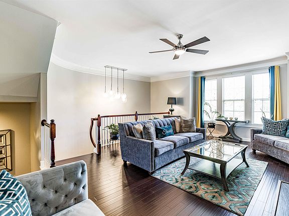 Welcome to your new home! The winding foyer leads you to a bright living area with a gas fireplace, newer bamboo floors, and an open floorplan. The kitchen boasts stainless steel appliances & granite countertops, w/light pouring in from both sides. Upstairs, the primary bedroom has a sitting area and private porch, while the primary bathroom features a walk-in shower, separate tub, and walk-in closet. Two guest bedrooms, a bathroom, and laundry complete the third floor. The ground floor has a full suite with a bonus room, bathroom, walk-in closet, and patio with storage. Experience style and comfort – schedule a showing today! HOA includes lots of activities, pool, clubhouse, playgrounds, walking trail and more!