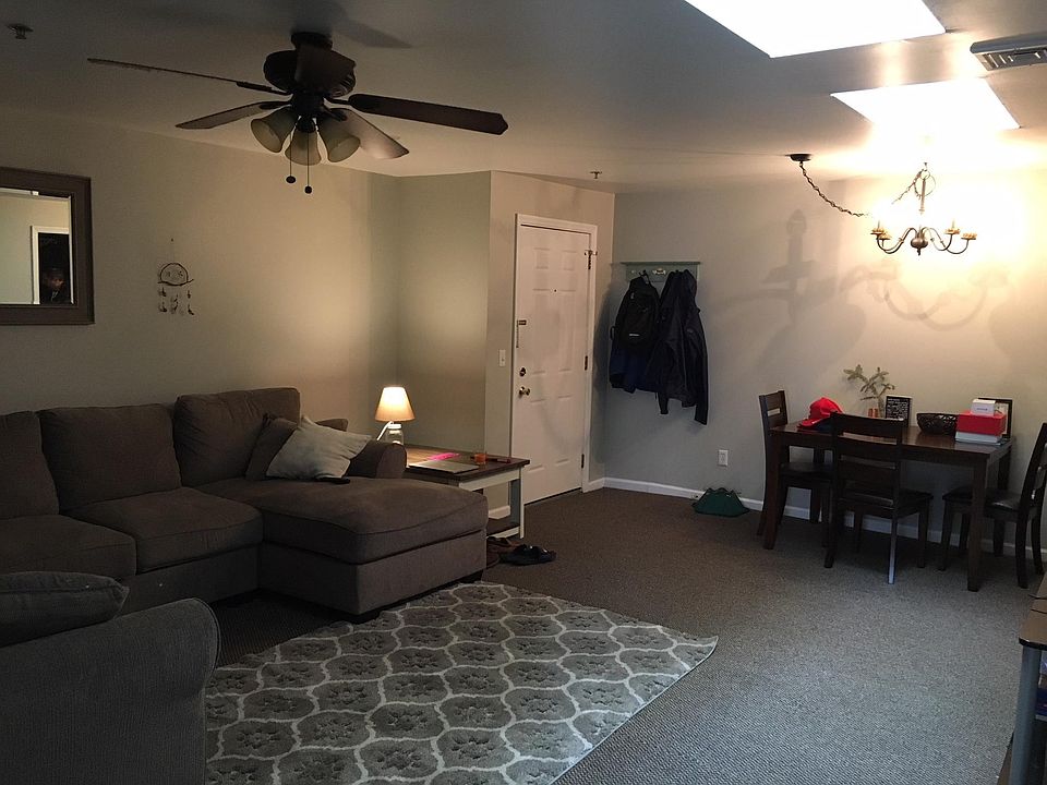Downtown apartment, 2nd floor unit Cats ok Washer dryer in unit Central air Huge living room All kitchen appliances included (gas stove, fridge, dishwasher, microwave) Lots of counter space and cabinets Lots of off street parking Carpeting throughout Walk in closet in the bedroom Skylight Top rated school district 1 mile from train station *Realtor fee ($2160) due by lease signing* *Photos are of a similar unit*