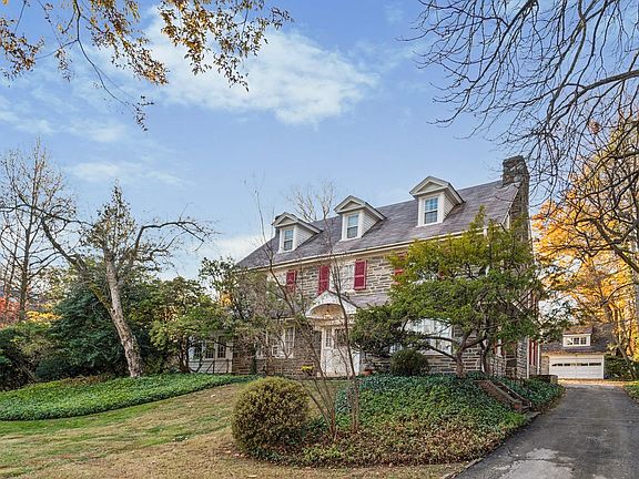Welcome to an exceptional home that has been loved by the current owners for almost 60 years. Sitting elegantly amongst mature trees, green lawns and manicured gardens in this highly desirable neighborhood, this stunning three-story, Stone Colonial masterfully blends classic charm with comfortable living. A wide brick walkway invites you up to the front door, hinting at the beauty within. Upon entering, you’re greeted by height, light and space with an open center hall and a grand staircase that immediately captures the essence of timeless elegance. Grand windows fill each room with natural light, while deep-set windowsills and hard wood floors add warmth and character throughout. The first floor boasts a formal living room with a striking picture window overlooking a large patio, in-ground pool and expansive back yard. Here you can sit for hours on the window seat and view nature’s spectacular show which is your own private oasis away from the hustle and bustle. A beautifully appointed fireplace and built-in bookshelves make this room perfect for both quiet evenings and entertaining guests. The formal dining room, also complete with elegant fireplace and built-in cabinetry is an inviting setting for formal or casual dinners, not to mention lively celebrations. Off the living room enter a sun-soaked den with a third and impressive, stone fireplace, rows of sill to ceiling windows and an exit to the rear patio, providing a more informal, relaxed space to enjoy family time and perhaps, pop out for a swim in the pool. The walk up the stairs to the first landing showcasing your expansive backyard through the great picture window convinces you each time you arrive there, this home is truly a magical place. Take three more steps to find three spacious bedrooms and two full bathrooms on the second floor. The primary bedroom is as grand as the living room with beautiful light, space and privacy from the other rooms. It boasts a walk-in closet and an ensuite bath with a full tub/shower. On the opposite side of the house is a large room with perfect light which can be a bedroom, office or big dressing room. A third large and private bedroom with full bath with tub/shower, a deep inset cedar closet and a spacious linen closet with built-in shelving complete to this floor. Ascend the open staircase to the third floor, where three additional bedrooms await, offering flexibility for family, guests, or a private home office. A full hall bathroom with a classic clawfoot tub along with a generous storage room, providing ample space for both comfort and organization complete this floor. The kitchen overlooks the patio and gardens with windowsills basking in warm light where plants thrive and windows to the ceiling offer wide views of your backyard. The most active room in the house offers a gas stove, dishwasher and plenty of cabinets and prep space. There is also a walk-in butlers pantry featuring wall to wall cabinets for plenty of storage, a powder room and a mud room with an exit to the driveway. Outside, the expansive grounds offer beauty, peace and tranquility. The mature landscaped yard features a lovely patio with brick walls, colorful gardens, a sparkling in-ground pool complete with pool house offering 2 changing rooms and bathroom - perfect for summer relaxation or entertaining. Additional features of this home include a full basement with laundry area, a finished room and plenty of storage room. There is a two car detached garage with a finished loft space above- ideal for a home-office, yoga or creative studio. Situated within the award-winning Lower Merion School District, 402 Penn Road combines elegant living with ultimate convenience