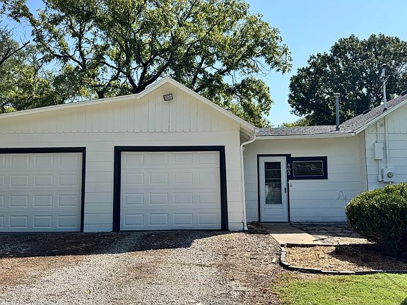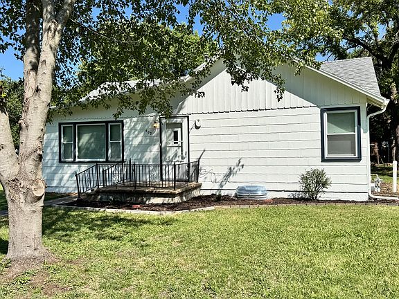 Home on corner lot just a few blocks from the Osage City Schools. Two bedroom One bath with large living room and separate dining area. CLEAN, CUTE, AFFORDABLE small town living located between two federal lakes. Nice kitchen with oak cabinets and modern tile backsplash. Both bedrooms and the hallway have the original oak hardwood floors. The breezeway between the house and two car garage offers a wall of storage cabinets, laundry facilities and serves as a perfect mudroom with access to the backyard. This one will be easy to call "Home". No smoking allowed or pets.