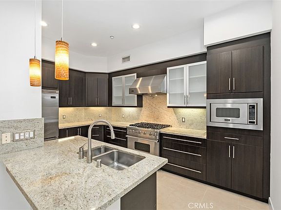 City light views form this beautiful single level south facing upgraded penthouse, located on the fourth floor in the exclusive Lennox enclave at Central Park West, Orange County's most luxurious mid-rise. This single level luxury flat features 1,917 square feet of living space, 2 master suites, 2.5 bathrooms, a private deck and an over sized two side-by-side car garage with ample storage. Interior finishes includes beautiful tile floors that guides you through the luxury of Wenge cabinetry, 8 Ft floor-to-ceiling windows, white cashmere granite counter tops with back splash, stainless steel Viking appliances in kitchen, custom tile floors in bathrooms, laundry room and custom carpet in bedrooms. This four-story mid-rise of distinctive and spacious collection provides a wealth of indulgences, from exquisite interior finishes to an intimate garden courtyard and a Lobby Ambassador. The 8,000 square-foot clubhouse / recreation center provides you with a bounty of amenities such as two Jr. Olympic saline pool, three outdoor Jacuzzi / spas, barbecue pavilion, state of the art health and fitness center, one outdoor half-basketball court and one pickle ball court. Live in Orange County's newest, resort-style & recreational Oasis master planned community...The Central Park West.