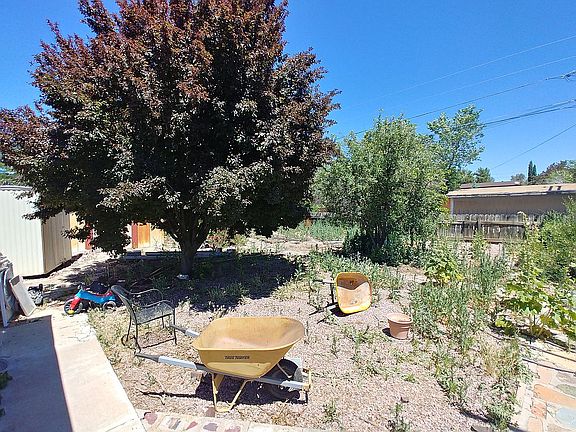 Needs new shingles they have granular loss, floor cover (carpet was removed) now just painted subfloor, has some fruit trees, house has single pane windows. Attached garage converted to living space with walk in storage.