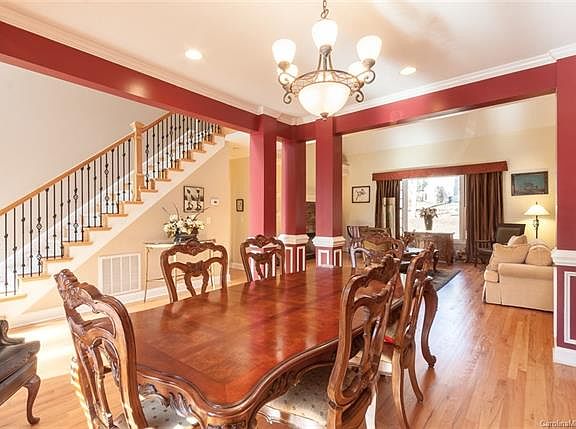 Large home with many upgrades. Perfect for entertaining or just living the good life that you deserve. Kitchen with 5 burner gas stove, double oven, center island, solid wood cabinets, large pantry, breakfast bar. Rooms are ample size, with walk in closets in all bedrooms and private or jack & jill bath with linen closets. Laundry room/ mud room with sink and cabinets. Hardwoods throughout main and marble floors in foyer and half bath. Porch with French doors off dining room, built in shelves in living room and breakfast bar in kitchen. Four heat zones, two fireplaces, central vacuum system. Upstairs flex/bonus/4th bedroom.