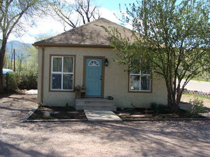 Single Family Home for sale by owner in Colorado Springs, CO 80905. Adorable 107 year old bungalow at the foot of Pikes Peak in the Colorado Rockies. Features include: Newer upgraded, energy efficient windows. Hand textured walls and coffered ceilings. Newer hardwood and tile floors. Kitchen with hardwood cabinets and natural stone countertops.Easy, quick on and off to SH-24 and I-25. Near schools, shopping and restaurants. Vacant back lot with water and sewer taps (fees already paid). Back lot can be approved for a variety of structures. Two (2) storage sheds on property; 10' X 16' and 6' X 8'. Nicely landscaped with mature trees and shrubs. 6 1/2' X 12' composition deck and 165 sq' brick patio.New street paving on city agenda within next 3 years. An absolute must see and a lot of bang for the buck Bring me your offers!