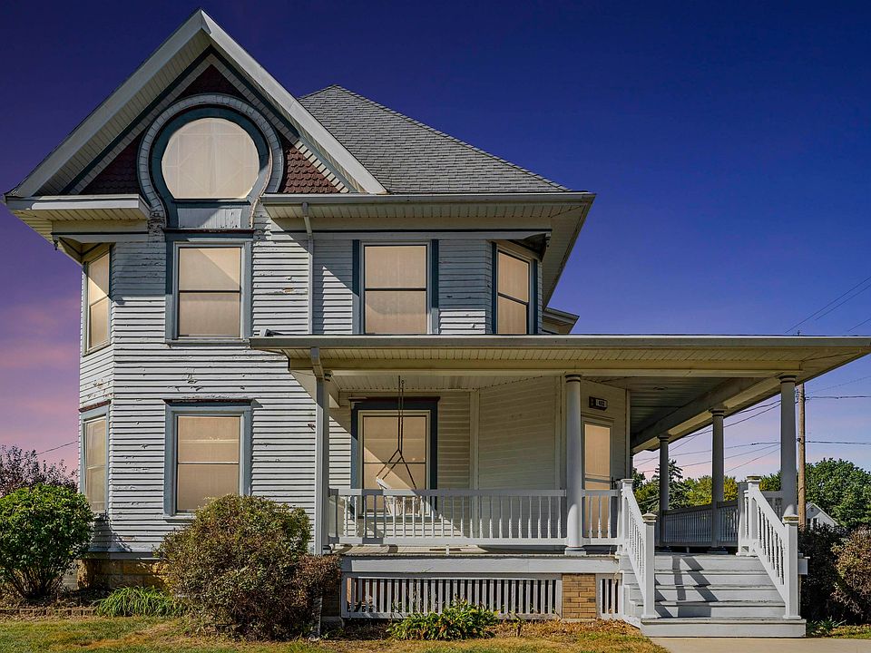 Step into a piece of Iowa's history in this beautiful 1900 historic gem. Featuring 5 bedrooms, 2 baths, & 2,500+ sq. ft. of living space, this home blends timeless craftsmanship with thoughtful modern updates. The moment you arrive you’ll notice the large wrap around front porch. Inside, rich custom woodwork, original millwork, & crown molding showcase an era gone bye. Hardwood floors flow seamlessly through living areas. The rounded staircase is a stunning focal point, leading to upstairs filled with character & charm. Updated kitchen is a perfect blend of old & new, featuring SS appls, double ovens, hood fan, & stylish tile backsplash complimenting the home’s classic design. Both baths have been tastefully updated with modern comfort & historic appeal. Outside, a large .31 acre lot provides space to relax & entertain, complemented by a 2 car garage with upper carriage house...perfect for workshop, studio, or additional storage. Ideally located near the heart of town, this property offers a rare opportunity to own a piece of Maquoketa’s architectural history, thoughtfully preserved & ready for its next chapter.