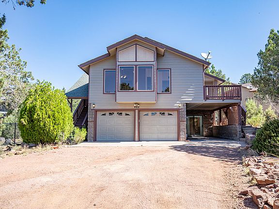 Great location, walking distance to the public golf course and close to the National Forest. 3 Bedroom, 3 Bath home with a 3 car garage and 1 car carport. Home needs some updating but priced accordingly. The main level offers 2 bedrooms 2 baths and lovely views. Open Deck that has just been replaced. Downstairs is a laundry room, bedroom and full bath plus a family room/office. Lots of potential!