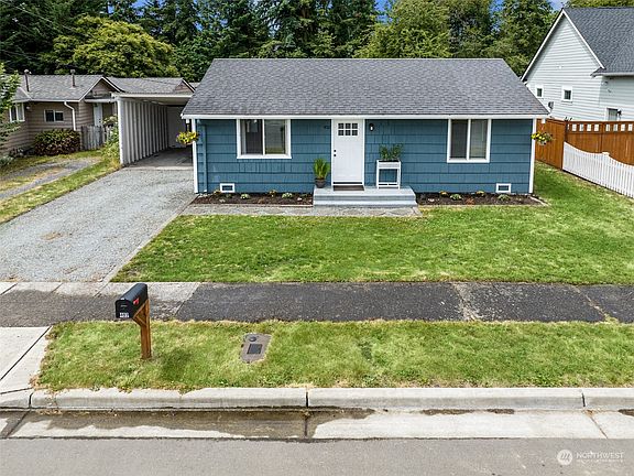 NO HOA! This well cared for 2 bedroom home w/exceptionally large lot in the heart of Arlington! Fully fenced backyard, 2 separate patios, plenty of grass, open space for your, pets & gardens. Relax & soak in the great PNW summers around your very own backyard firepit. Home features kitchen, dining room, laundry, living room w/lots of natural light & updated bathroom. Original Hardwoods in bedrooms. Plenty of driveway, carport & street parking. Two large covered storage shed/shop spaces attached to carport. Brand new exterior/interior paint in 2023. New Water Heater in 2021, New Crawl Space in 2023 w/10yr transferable warranty. New Washer/Dryer 2021, New Blinds, New Vinyl wrapped windows throughout in 2018. Roof was replaced in 2010.