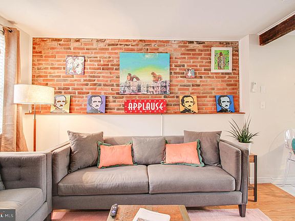 Located in the heart of Baltimore, in the Historic Fells Point Neighborhood, steps from Little Italy and Harbor East, this adorable 1-bedroom, 1-bathroom brick row home is a charming gem that effortlessly combines classic details with modern amenities. Boasting a classic Baltimore row home facade, constructed with enduring red brick that exudes timeless charm, windows adorned with bright blue trim and the quintessential “Red Door”, this home screams “BALTIMORE”. Don’t let the size fool you. As you step inside, you are greeted by a cozy and well-lit living room with original hardwood floors, brick wall, wood beams, neutral paint tones, and plenty of natural light. An intimate eating area combined with a modern kitchen round out the main level. Just outside is a beautiful, private English garden. Gorgeous mature climbing ivy, and a cobblestone patio finish this storybook oasis perfect for grilling or just relaxing. The bedroom, located on the upper level, is spacious and offers a serene retreat with soft carpeting and a neutral color palette. High ceilings and a skylight fill the room with plenty of natural light. Off the bedroom you will find a generous closet and an area perfect for a home office or reading nook. The recently updated (9/23) spa bathroom includes modern fixtures, a vanity with storage, and a shower/bathtub combination with a rain shower. Throughout the home, you'll find tasteful finishes and touches that complement the character of the row home while providing modern comfort. Easy access to public transportation makes commuting a breeze. This loved home full of character and personality is perfect for a single individual or a couple looking for a cozy and charming place to call home. Its classic exterior and modern interior make it a desirable option in the heart of the city. Don't miss the opportunity to make this house your own and experience the best of Baltimore living while at the same time being able to say that you live on the block that the set designer Vincent Peranio lived on for many decades (the “Palace on Dallas”). Some additional trivia about this block … Did you know this block was also featured in the John Waters movie ‘Female Trouble’ and Divine and Aunt Ida lived a few doors down. This home is a must see to be truly appreciated.