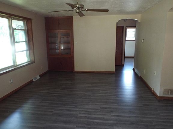REDUCED! Nice little ranch home at the end of a dead end street. Over size one stall garage with room for two cars, work shop, or storage. House had same renter for approx 20 years. Newer windows and new flooring. Metal roof on house and garage. Black top drive. Porch with built in grill, chimney needs roof cap and has not been used for several years.