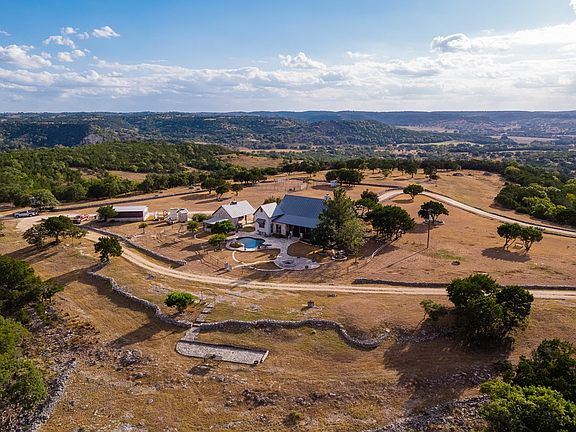 A Safe Haven in the Hill Country!! Located five minutes from Comfort, 15 minutes from Kerrville, & 40 minutes from San Antonio. A beautiful Hill Country house offering 360 degree views of the surrounding Hill Country. The house has a large country kitchen with galvanized metal counter tops, large island, and tall wood ceilings, and a large dinning area. There are exposed wood beams that run throughout the dining and large living area. The living area boasts of a large rock fireplace. Floors are Saltillo tile, and hardwood, and there are multiple rock walls inside the house along with antique interior doors. The exterior of the house offers covered front and back porches, beautiful pool, large BBQ area, rock fire pit, and beautiful landscaping. The land is a mix of cover and open spaces with large hardwoods, and nice native grass. Wildlife include white-tail, black buck and free range axis. The ranch has a great pond with sitting dock, and there rock fences all around the home compound. Other improvements include a two car carport storage room, an implement barn with workshop, 3 stall horse barn, & metal tractor barn with a cozy efficiency apartment. There are 4 water wells.