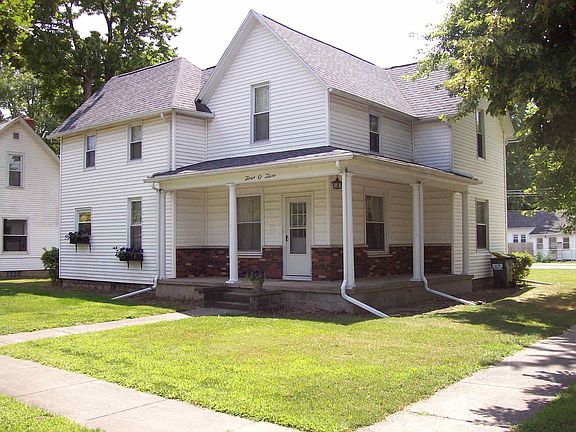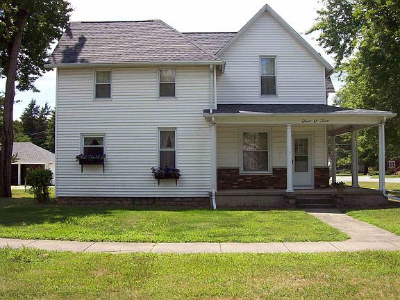 Here's a gracious 2 story home that has 3- 4 bedrooms, one and half baths, eat-in kitchen, parlor with open staircase and a large living room. Lots of closet space through-out including a full storage basement. Outside there's a wrap-around covered porch and 2 car detached garage with blacktop drive on a corner lot. Updates include, roof, siding, windows !! Must see this quality built family home !