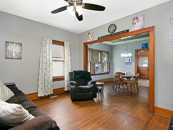 Great 2-bedroom, 2 bath starter home with a flat fenced-in yard and 2-car garage. Enclosed porches, one in the front of the home and one in the back. Open concept living and dining room with tall ceilings. Original wood floors and trim throughout the home. Bathroom on main has been completely remodeled featuring a walk-in shower with glass door. Kitchen has a new electric stove with a walk in butler pantry. Upstairs could easily be finished. Basement is 1/2 finished and offers a 1/2 bath and finished rec-room. Laundry room has a utility sink.